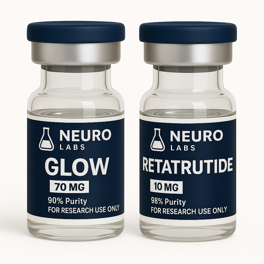 This stack combines Tesamorelin, CJC-1295 (No DAC) with Ipamorelin, and the Glow Blend to support controlled in vitro studies involving metabolic pathway activity, GH related signaling models, and cellular repair or regeneration processes. Each component is supplied in lyophilized form at high purity and is used to examine complementary biochemical mechanisms across metabolic, endocrine, and tissue support research frameworks. For laboratory research only, not for human or veterinary use.