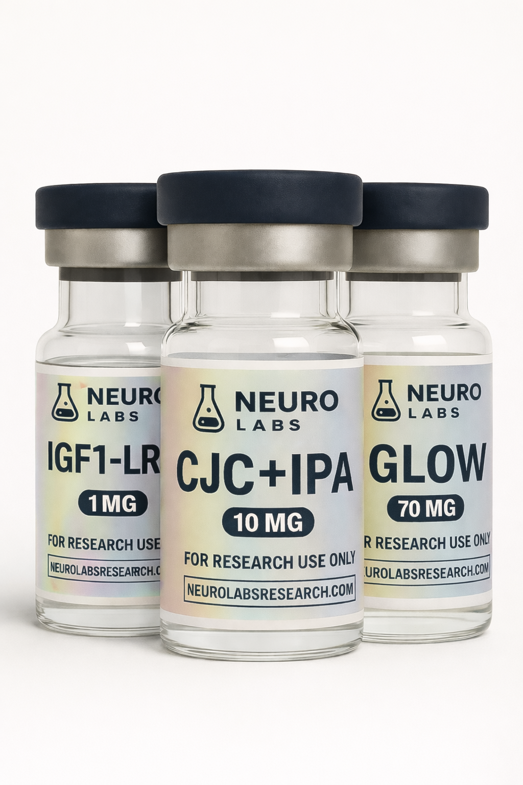 This stack combines IGF1-LR3, CJC-1295 (No DAC) with Ipamorelin, and the Glow Blend to support controlled in vitro studies involving metabolic pathway activity, GH related signaling models, and cellular repair or regeneration processes. Each component is supplied in lyophilized form at high purity and is used to examine complementary biochemical mechanisms across metabolic, endocrine, and tissue support research frameworks. For laboratory research only, not for human or veterinary use.
